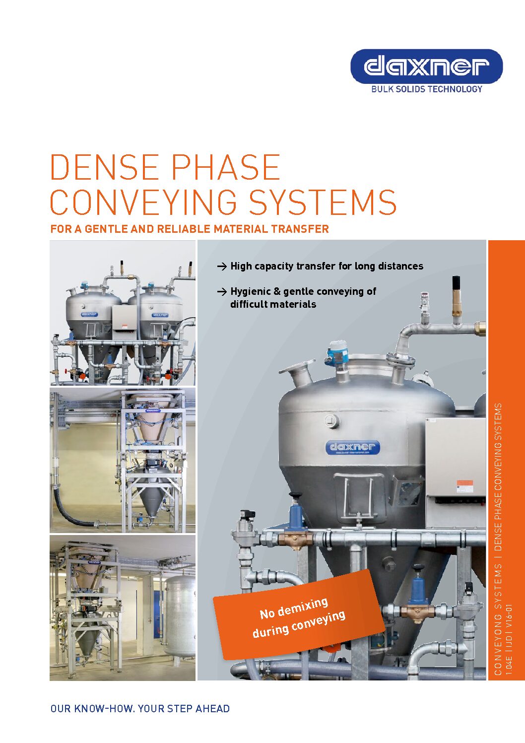 Dense phase conveying systems allow a gentle and reliable material transportation combined with large throughput performance. They are suitable for materials with poor flow characteristics and highly abrasive materials.