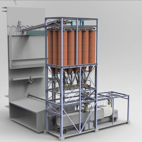 Daxner delivered a new silo plant for the storage of ready-made animal feed for a highly prestigous manufacturer of pet food. The silo loading plant is characterized by short loading times and high product quality.