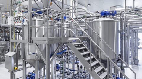 Then the sour dough is pumped into an empty tank for fermentation. A dedicated extraction pipe is available for each type in order to avoid any cross-mixing. The fermentation tanks are also naturally equipped with a stirring discharger to keep the rising sour dough moving and thus to reduce the volume. The sour dough is then transported by type through further separated pipes to the weighing stations where smaller storage tanks are installed and from which the sour dough and other liquid components may be requested. This action speeds up the weighing, because the individual ingredients do not have to be transported long pipe distances.