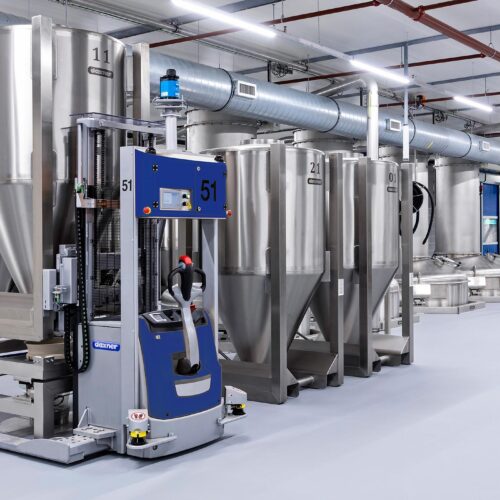 Das Container Entleersystem DCS (Daxner Container System) dient der sicheren und schonenden Austragung schwer fließender Schüttgüter. DCS erfüllt die hohen Anforderungen hinsichtlich Rezeptur- und Chargenzahlen, kompakter Bauweise, Flexibilität, Hygiene und Kontaminationsfreiheit. Auf der Powtech zeigt Daxner einen Container mit kompletter Entleerstation inklusive automatischem Klappenöffner. Ein großer Vorteil des Systems ist, dass der Container dank des vollautomatischen Klappenöffners auch an schwer zugänglichen Stellen positioniert werden kann. Die Ausführung erfolgt im Hygienic Design.