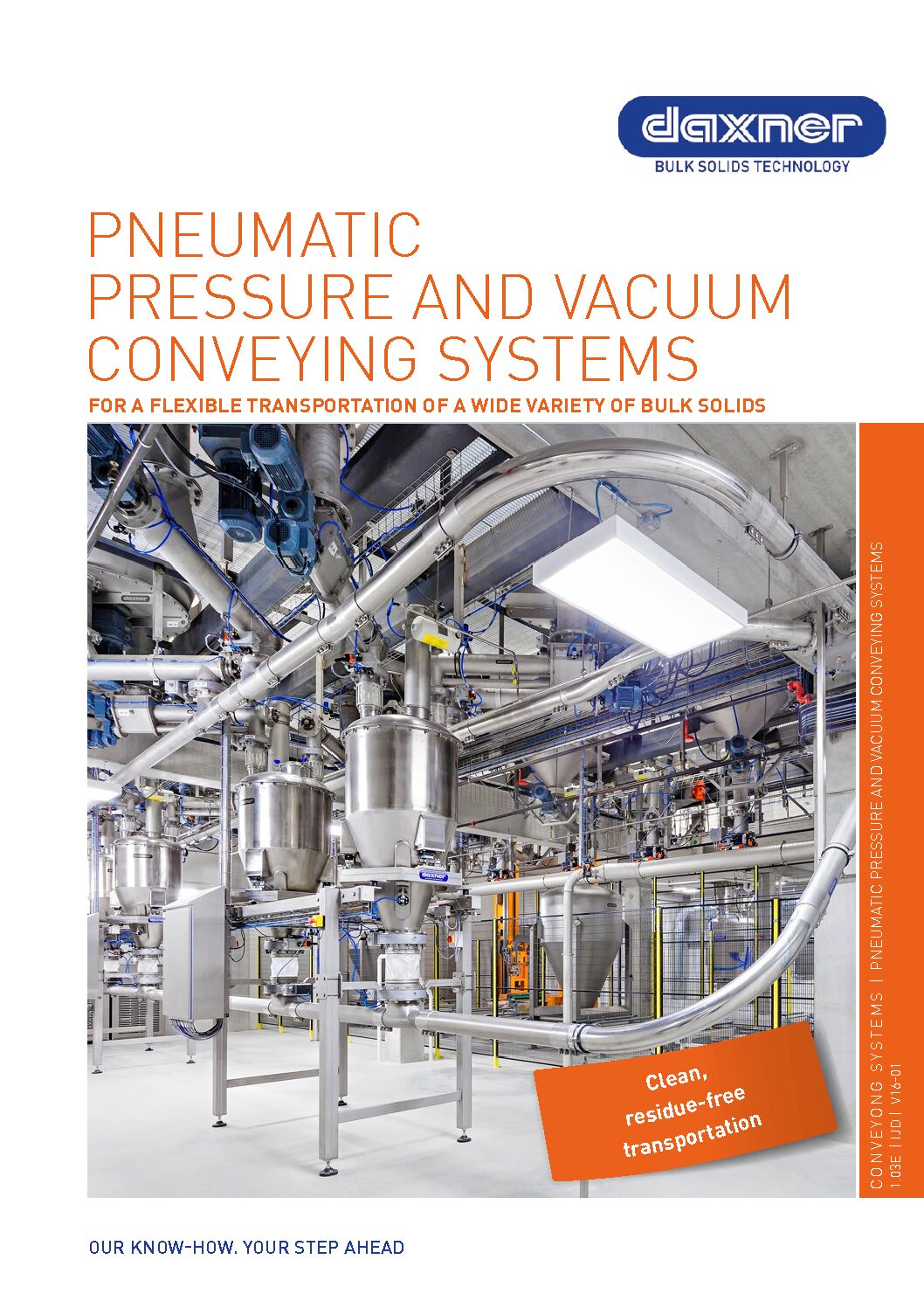 Pneumatic conveying systems via positive and negative displacement enable a flexible transportation of a wide variety of bulk solids. Customized solutions provide a clean and reliable operation by using high-end, well-tested components.