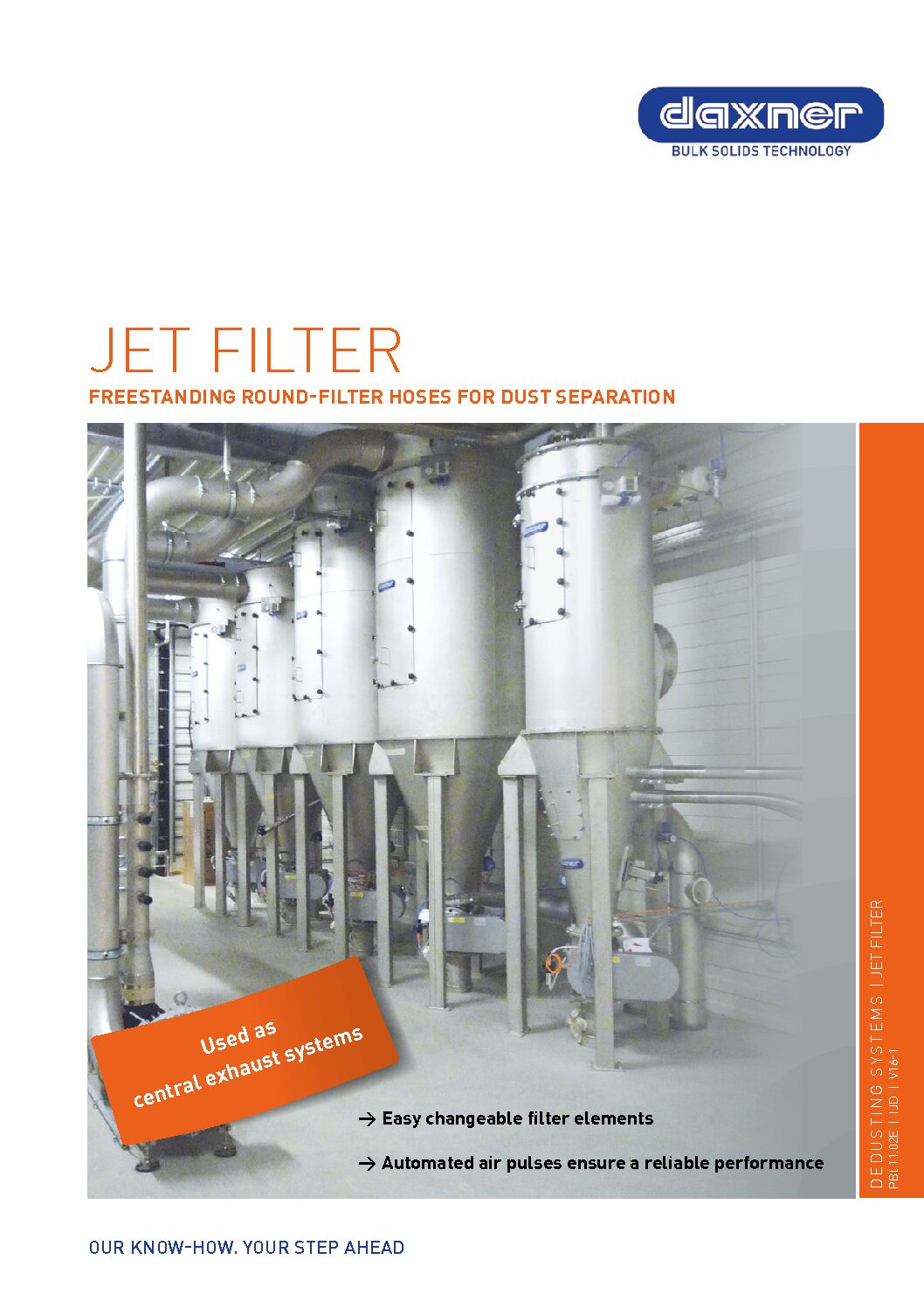 Daxner’s jet filter is used for the dust control of silos and bins. The separation of the material air-mixture into clean air and dust happens in the silo hoses (or cartridges).