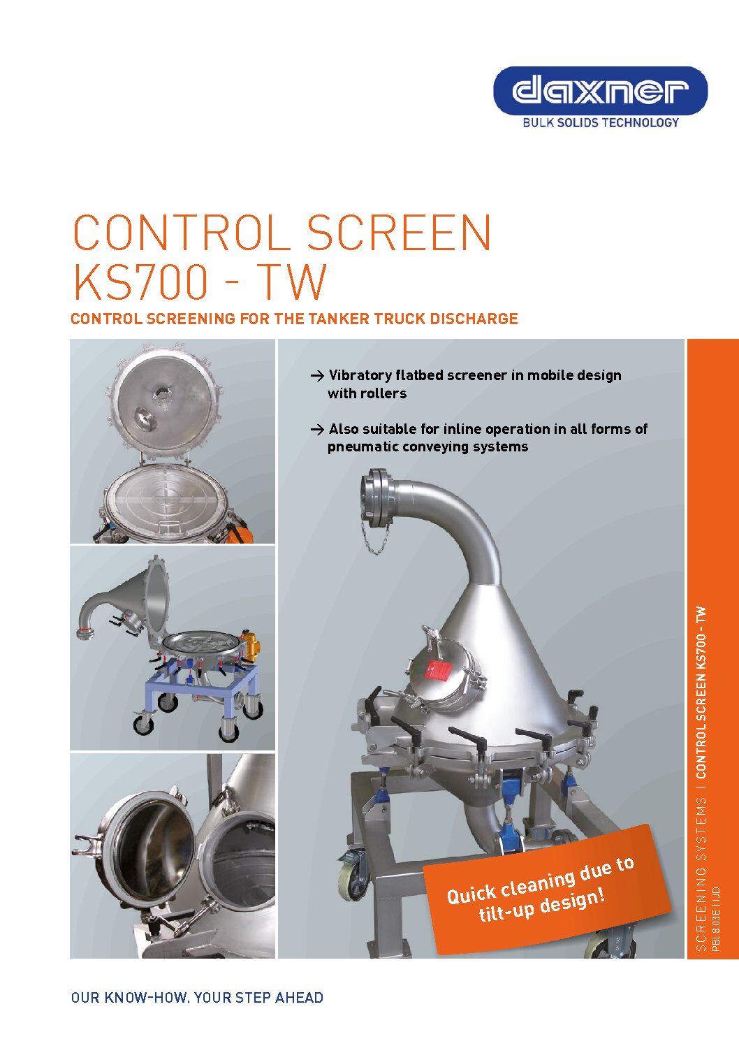 The mobile screen is connected between the tanker truck and the silo-loading line using quick-change couplings prior to the pneumatic conveying.