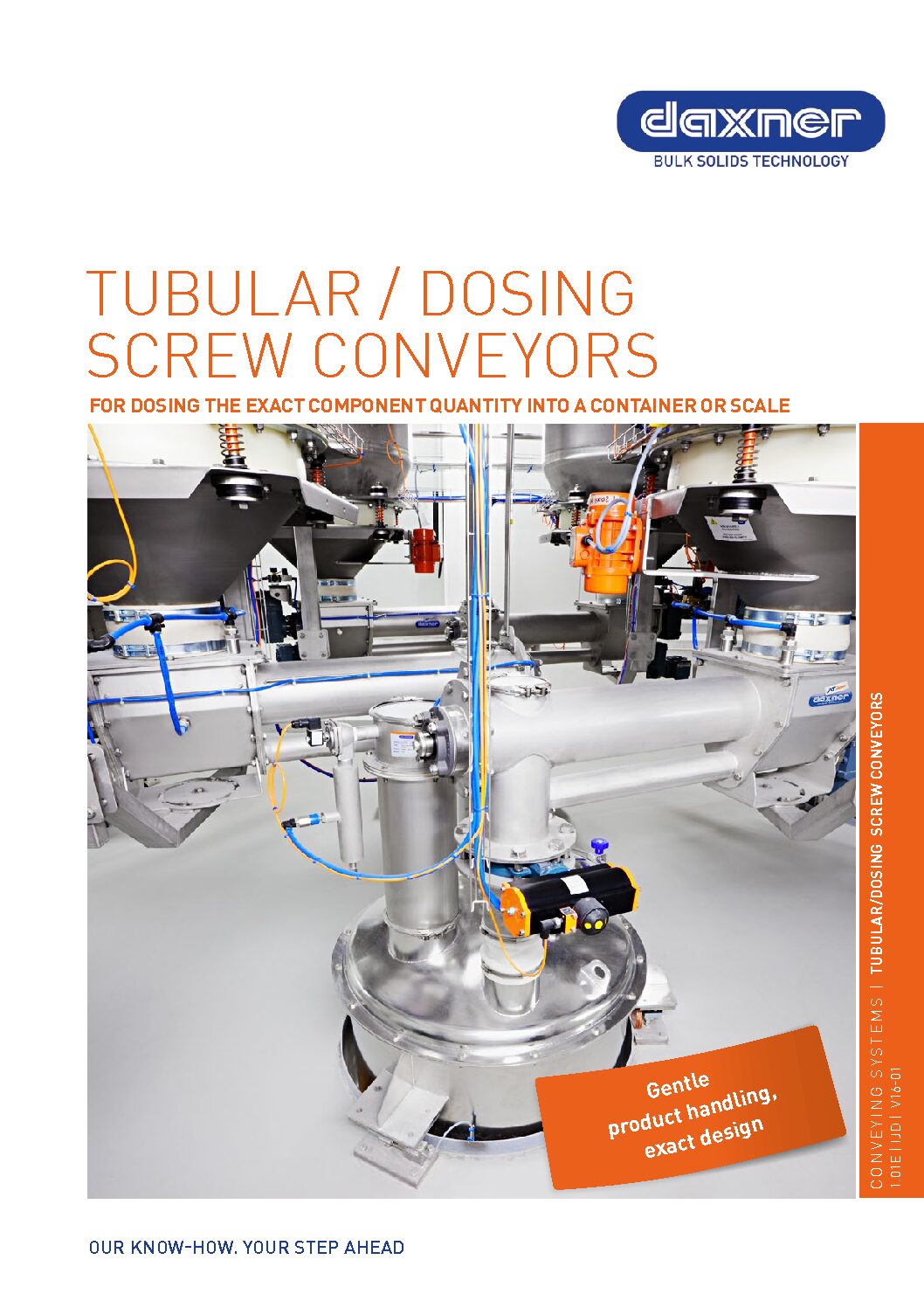 Dosing screw conveyors are used for dosing the exact component quantity into a container or scale. Different speeds for coarse and fine materials combine a high throughput volume and exact dosing.
