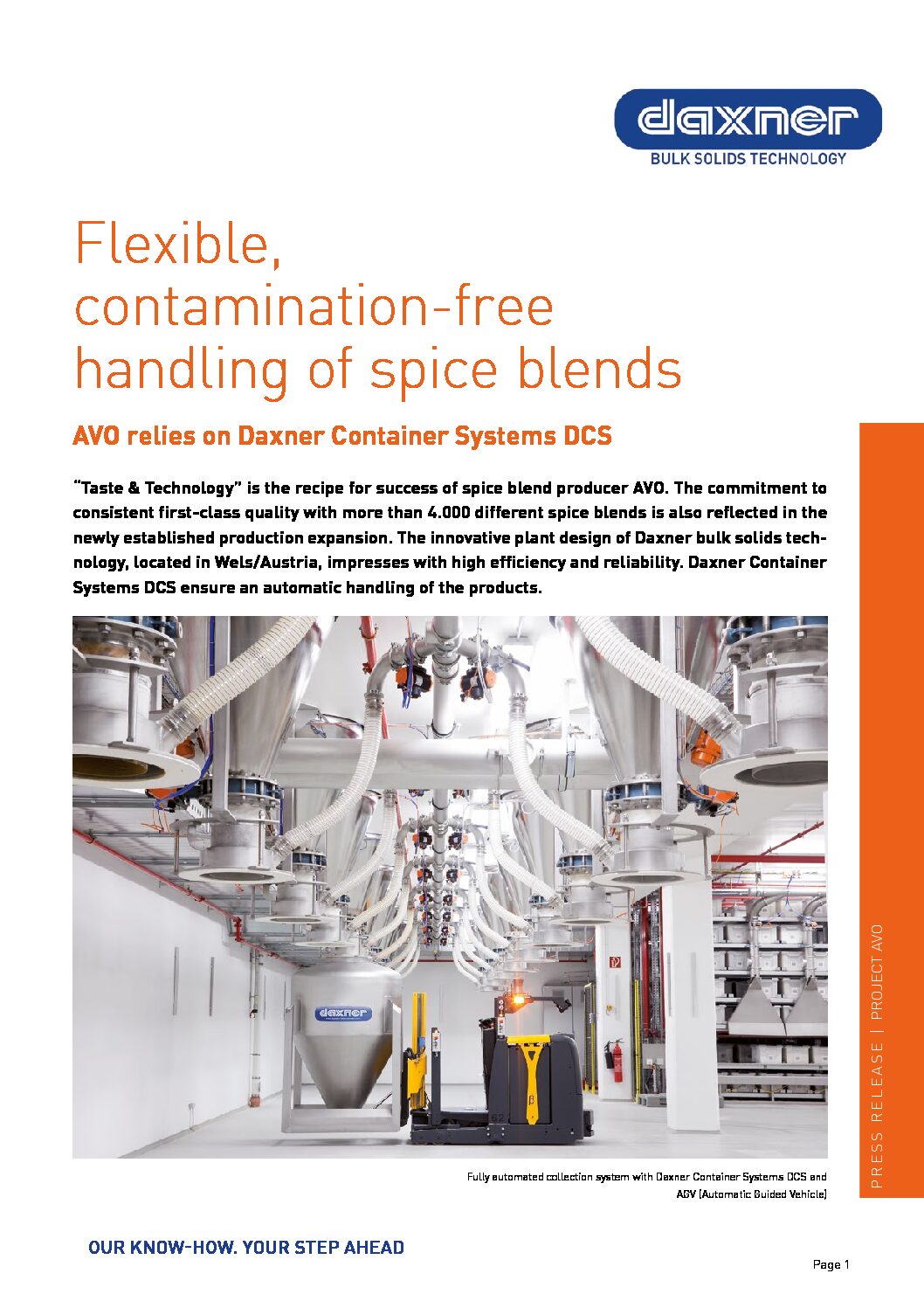 As one of the leading spice blend producers in Europe the company produces more than 4.000 different spice blends. The innovative plant design impresses with high efficiency and reliability. Daxner Container Systems DCS ensure an automatic handling of the products.