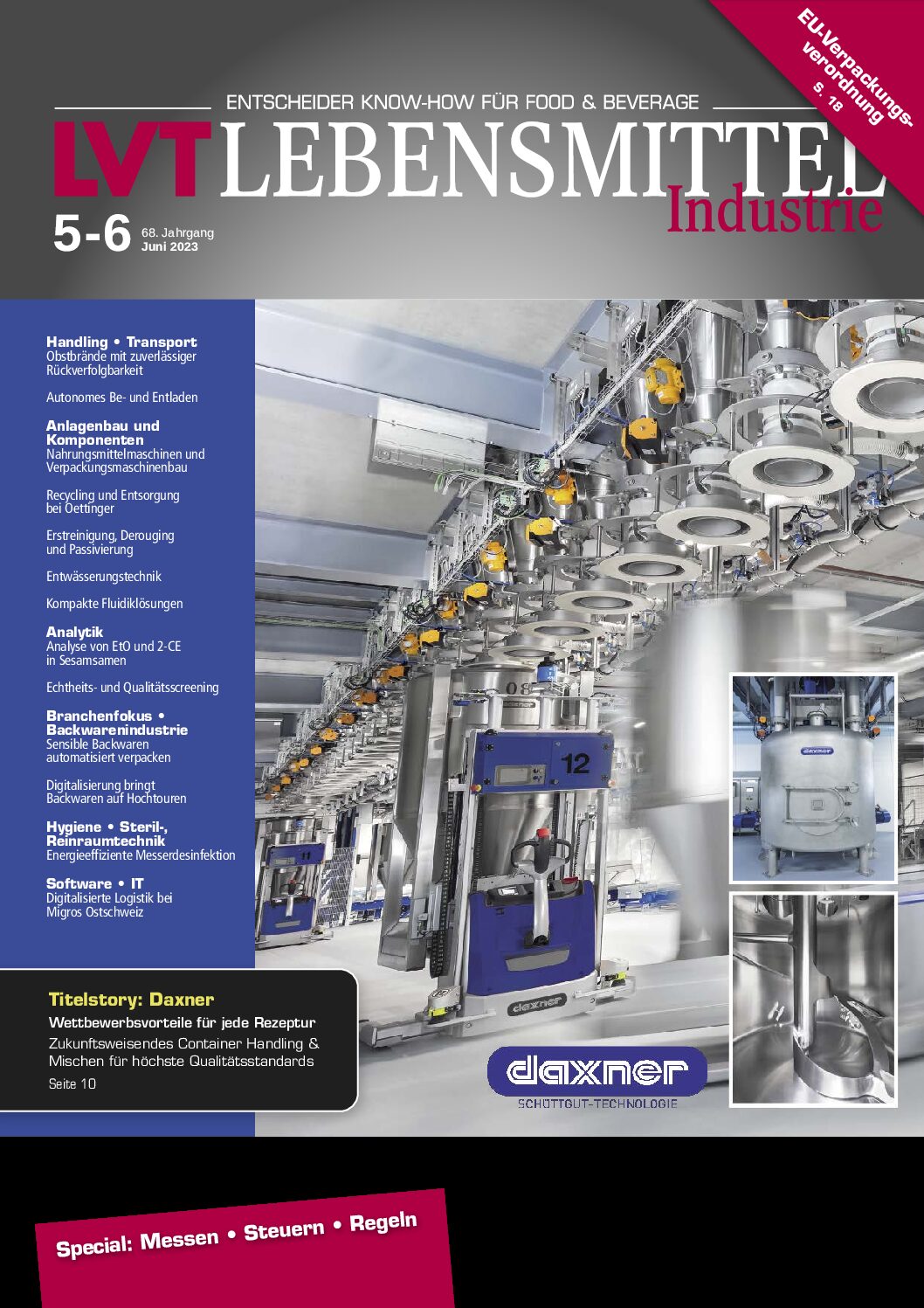 Höchste Anforderungen an Leistung, Flexibilität, Hygiene und Effizienz sowie die Vermeidung von Quervermischungen bis hin zur allergenfreien Produktion: darin liegt die Zukunft des „Automated Ingredient Handling“ im Food-Bereich. Und hier liegen auch die Vorteile der Daxner Container Handling Systeme (DCS).