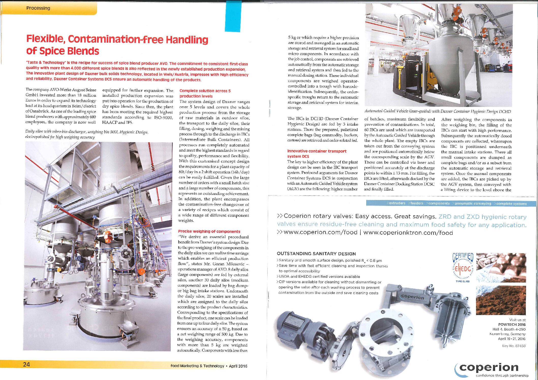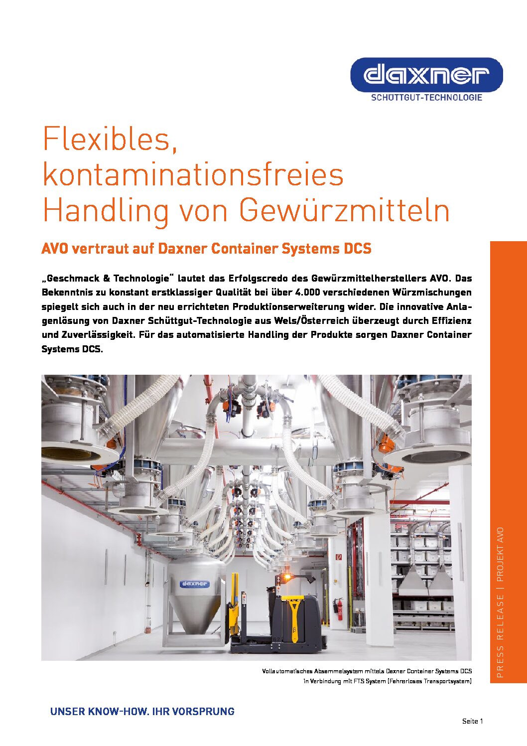 Das Unternehmens zählt zu den europaweit führenden Gewürzmittelwerken und produziert über 4.000 verschiedene Varianten an Würzmischungen. Die Anlagenlösung für die neu errichtete Produktionserweiterung überzeugt durch Effizienz und Zuverlässigkeit. Für das automatisierte Handling der Produkte sorgen Daxner Container Systems DCS.