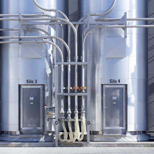 Um die ständige Ölversorgung der Produktion gewährleisten zu können, setzt man auf ein Zwei-Container-System. Wird ein Container leer, steht der zweite, volle Behälter sofort für die Produktion bereit. In der Zwischenzeit wird der leere Container mit einem Stapler entfernt und durch einen neuen Container ersetzt, ohne die Dosierung aus dem jeweils anderen FIBC zu behindern.
