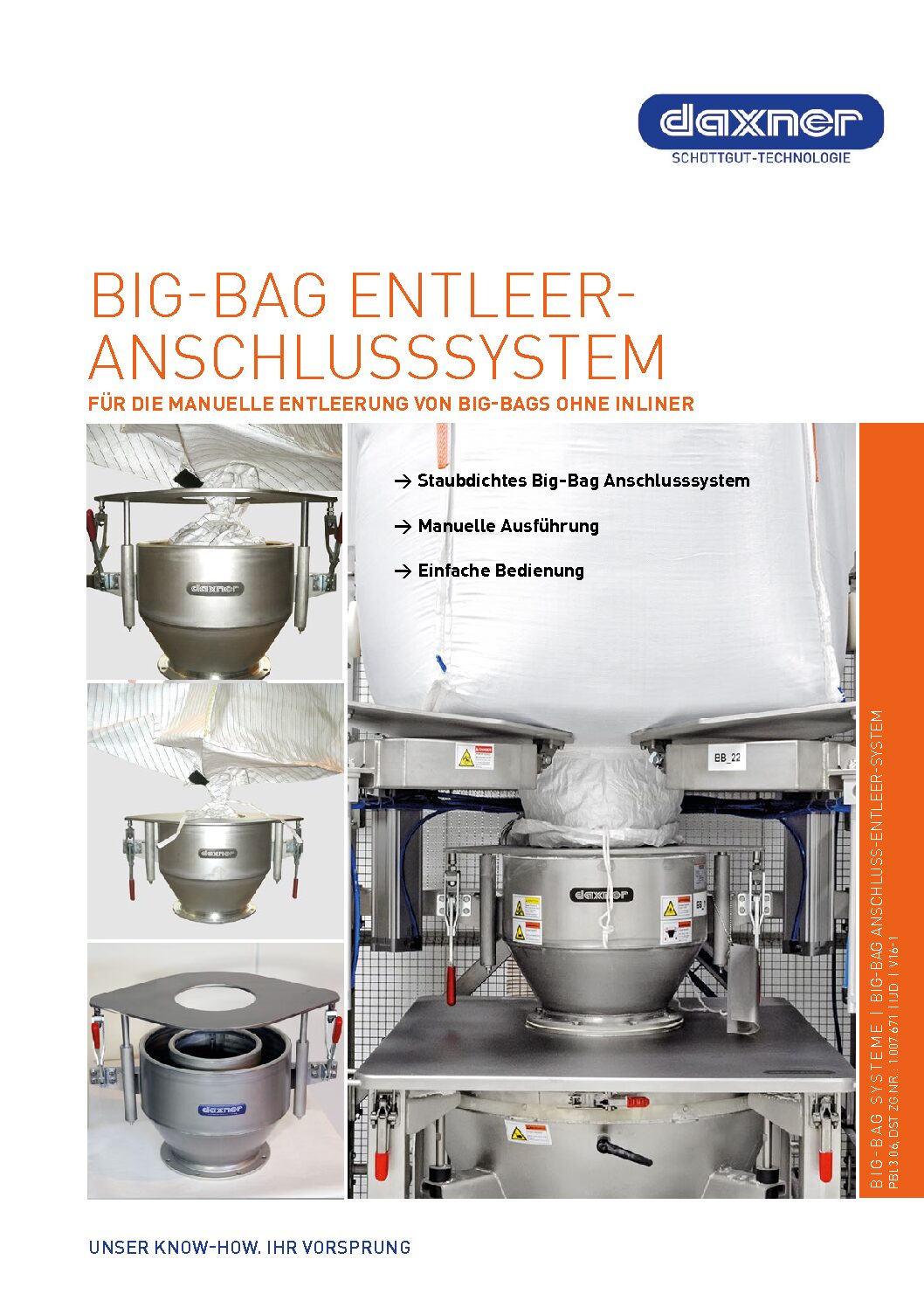 Durch eine spezielle Abdichtung und die Staubabsaugung des Raumes zwischen Innen- und Außenrohr der Andockvorrichtung wird die Staubbildung verhindert. Als alternative Austraghilfen für schwerfließende Produkte können wahlweise Walkelemente oder ein Vibro-Aufsatzteller eingesetzt werden. Für die automatische Dosierung von Mittelkomponenten werden Big-Bag Dosierstationen eingesetzt.