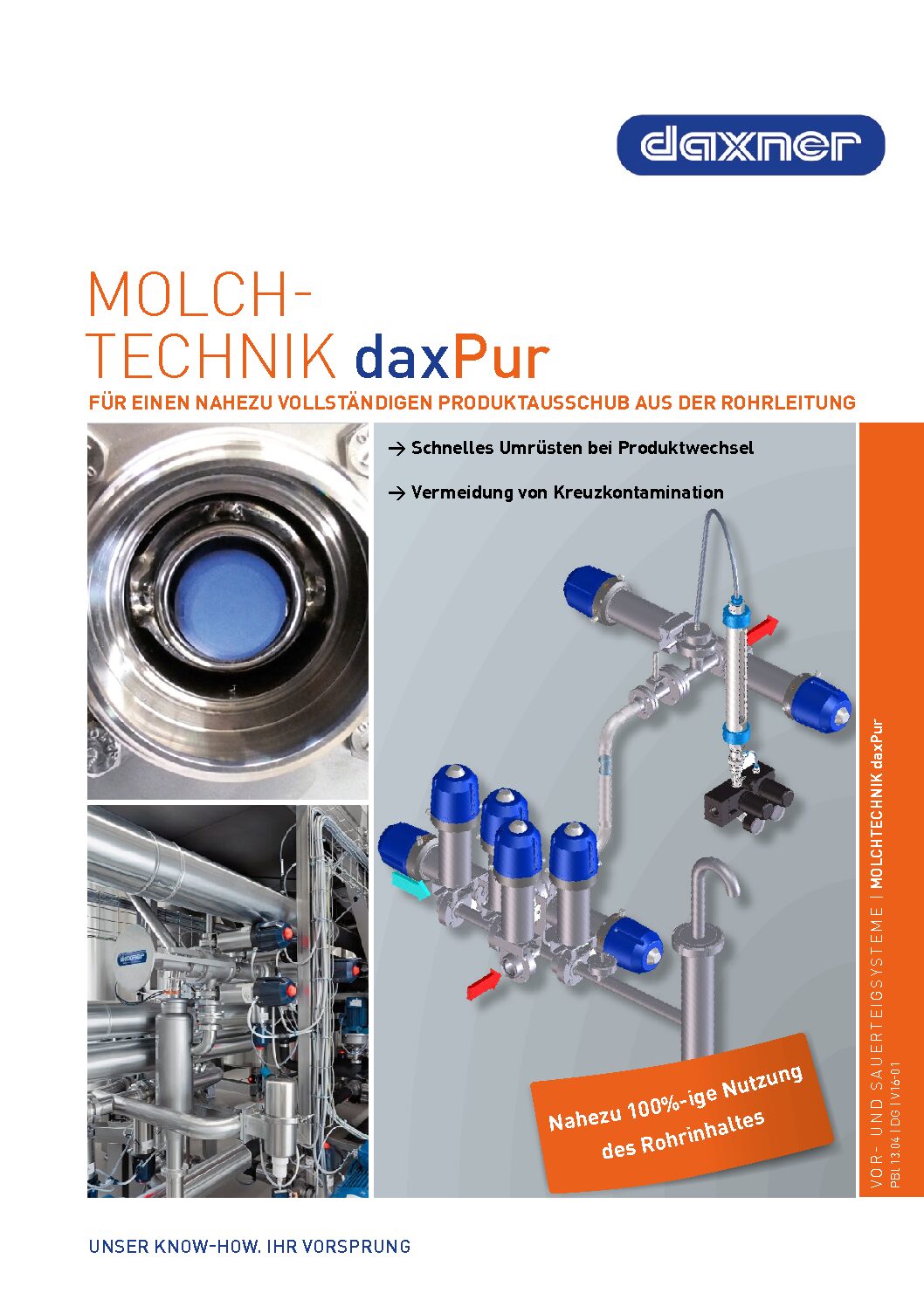 Primär wird die Molchtechnik daxPur zum Produktausschub (nahezu 100%ige Nutzung des Produktes möglich) oder zur sauberen Trennung aufeinanderfolgender Produktchargen in Rohrleitungen verwendet. Sekundär wird sie zur Reinigung (auch CIP-Reinigung möglich) nach dem Produktfluss eingesetzt.
