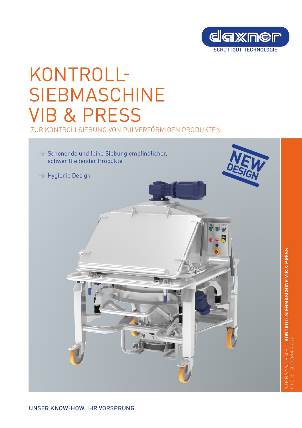 Die Kontrollsiebmaschine VIB & PRESS wird für die Aufgabe und die schonende Kontrollsiebung von pulverförmigen Produkten verwendet, insbesondere von schwierigen Produkten die zum Verklumpen neigen.